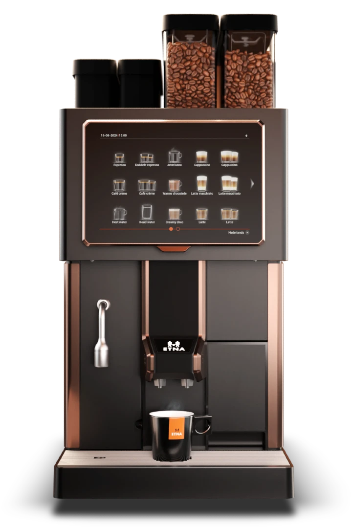De juiste koffiemachine doet meer dan alleen koffie zetten. Het is een investering in de sfeer, productiviteit en de energie van je bedrijf. Daarom bieden we de koffiemachines van Etna aan: robuust, efficiënt en gebouwd om lang mee te gaan.