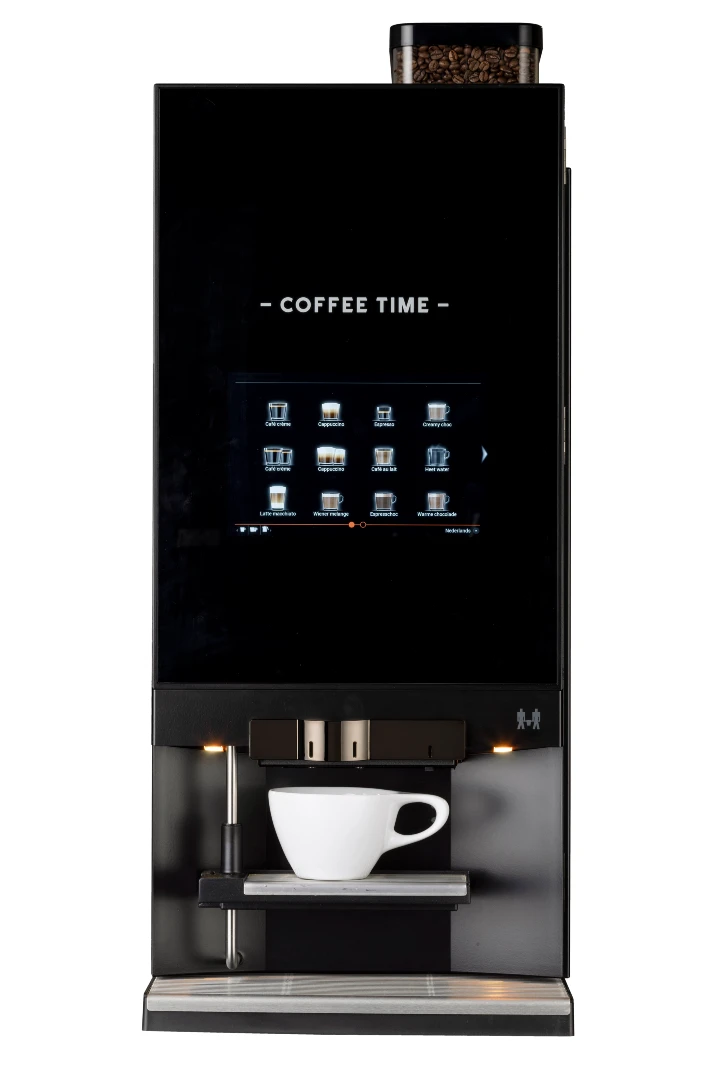 Deze koffiemachine is ideaal voor grotere teams van 50 tot 100 gebruikers die hoge eisen stellen aan capaciteit en variatie. Met twee bonenmalers en twee canisters voor chocolade en melktopping levert hij snel en consistent koffiespecialiteiten van hoge kwaliteit. Dankzij de robuuste uitvoering is hij perfect geschikt voor intensief dagelijks gebruik. Verkrijgbaar vanaf €6.527,- of via financial lease vanaf €150,- per maand.
